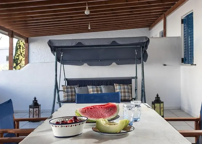 Die Villa in Moutsoúna liegt in einer Entfernung von rund 15 Fahrminuten vom Geologischen Museum von Aperathos, während Strand von Moutsouna circa 6 Gehminuten von der Unterkunft entfernt ist. Die Villa liegt 6 km vom Zevgolis-Turm.